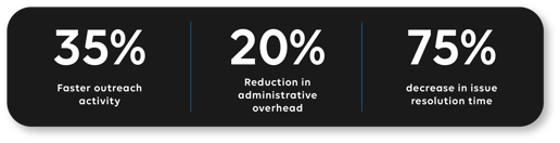 The Client Outreach product is designed to fit seamlessly into your existing business processes and enable fast, efficient client outreach campaigns at scale and with complete oversight.